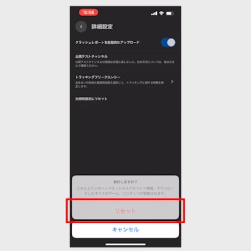 「実行しますか?」と表示されたら「リセット」をタップしてください。初期化はこれで完了です!