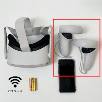 ヘッドセット、タッチコントローラー(左右)、Wi-Fiのパスワード、乾電池(単3_2本)、スマートフォンを準備してください。